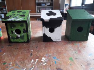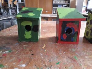 Die Werk-AG der Kerni hatte seit Beginn des Schuljahres ein großes Ziel. Sie wollten Vogelhäuser bauen und diese selbst gestalten. Viele Stunden und Wochen harter Arbeit liegen hinter den Kindern. Dabei lernten sie unter der Leitung von AG-Leiter Pascal aus der Kerni, was alles zum Vogelhaus-Bauen dazugehört: Pläne zeichnen, Holz sägen, hobeln, raspeln, schleifen, hämmern, schrauben und malen…. Die Arbeit hat sich wirklich gelohnt und die Vögel werden sich über diese schönen Häuschen sehr freuen!