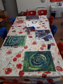 In den Faschingsferien ging es in der Kernzeit bunt zu: die Kinder durften kreativ sein und beispielsweise aus Gipsbinden ein eigenes Gemälde erstellen. Aber auch mit Wasserfarben und den altbewährten Holzfarbstiften wurde fleißig gezeichnet und gemalt. Die Ergebnisse konnten sich sehen lassen und wurden von den Kindern voller Stolz und Freude mit nach Hause genommen. Natürlich kamen Freispiel und Bewegung an der frischen Luft nicht zu kurz.