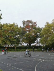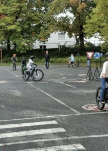 Die 4ten Klassen sind schon ganz aufgeregt, Mitte Oktober findet die praktische Fahrradprüfung statt. Um noch mehr Praxis zu haben, wurde unser Ballplatz kurzer Hand zum Verkehrsübungsplatz umfunktioniert. Die Viertklässler mussten beweisen, dass sie sicher fahren, die Verkehrsregeln beherrschen und richtig abbiegen können. Und es zeigt sich mal wieder: Übung macht die Meister!