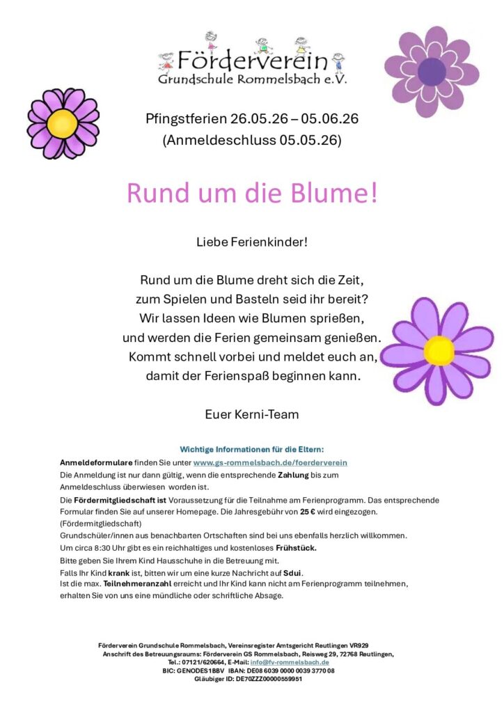 Untenstehend sehen Sie das Ferienprogramm für die Pfingstferien. Anmeldeschluss ist der 5.Mai 2026.